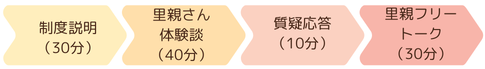 - さくらみらいの開催する『制度説明会+里親フリートーク』では、制度説明の後、実際に横浜市で里親活動をしておられる方々と、同じテーブルを囲みながらお話しできるフリートークタイムがあります(約30分間)。